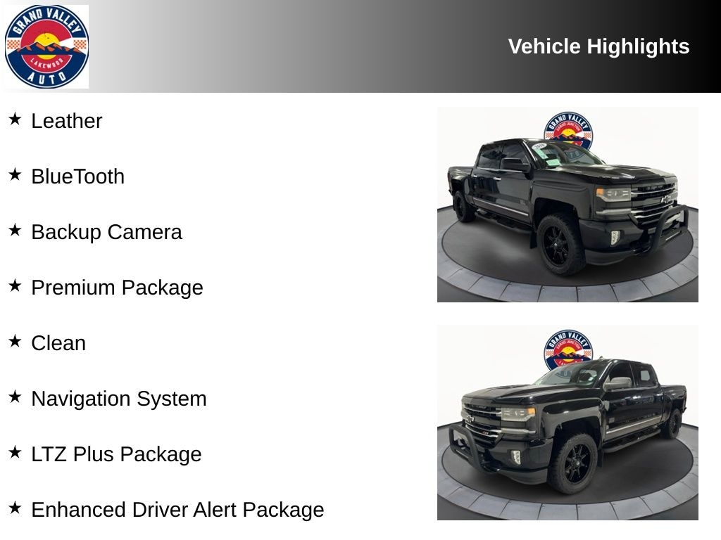 Leather, BlueTooth, Backup Camera, Premium Package, Clean, 110-Volt AC Power Outlet, Enhanced Driver Alert Package, EZ Lift & Lower Tailgate, Forward Collision Alert, Heated door mirrors, Heated Driver & Front Passenger Seats, Heavy-Duty Rear Locking Differential, Integrated Trailer Brake Controller, IntelliBeam Automatic High Beam On/Off Headlight, Lane Keep Assist, Leather Wrapped Heated Steering Wheel, LTZ Plus Package, Navigation System, Power Adjustable Pedals, Power Sunroof, Radio: AM/FM 8" Diagonal Color Touch Screen, Rear Vision Camera w/Dynamic Guide Lines, SiriusXM Satellite Radio, Steering wheel mounted audio controls, Ultrasonic Front & Rear Park Assist. Odometer is 53098 miles below market average!