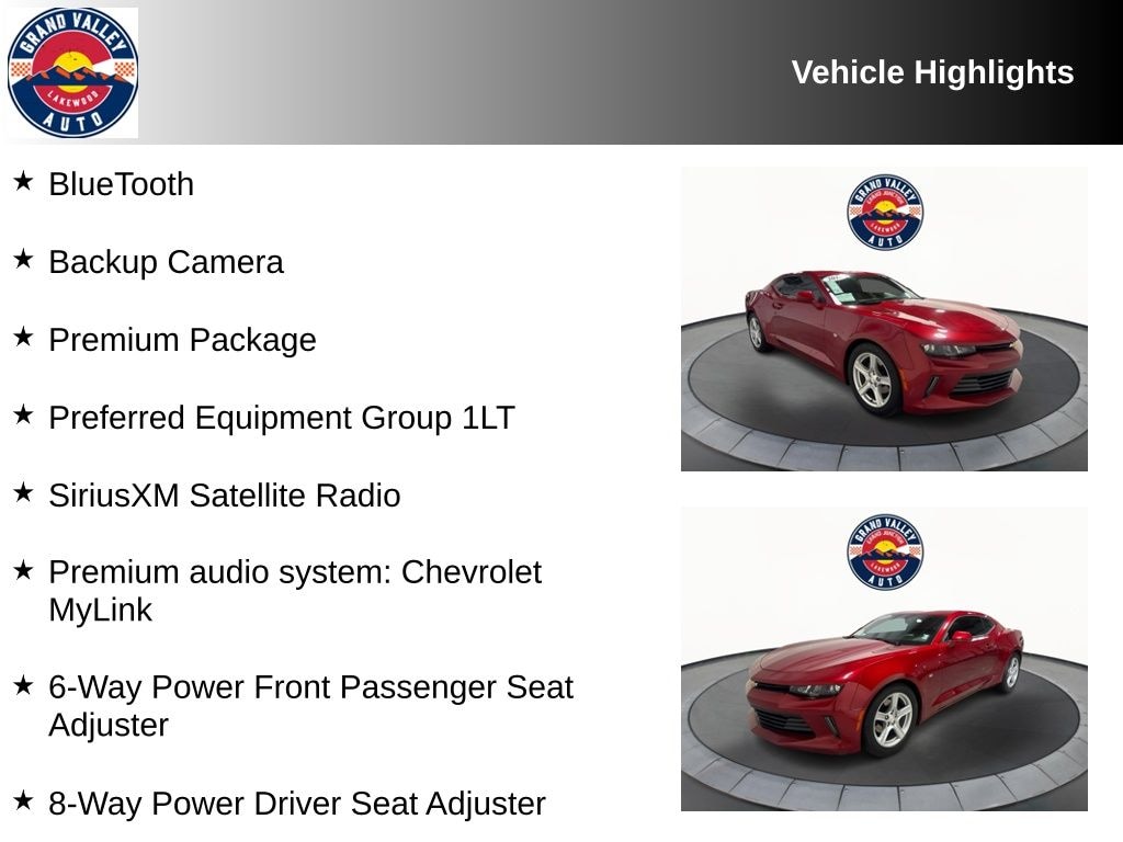 BlueTooth, Backup Camera, Premium Package, 6-Way Power Front Passenger Seat Adjuster, 8-Way Power Driver Seat Adjuster, Apple CarPlay/Android Auto, Dual front side impact airbags, Electronic Stability Control, Emergency communication system: OnStar Guidance, Front Sport Bucket Seats, Power door mirrors, Preferred Equipment Group 1LT, Premium audio system: Chevrolet MyLink, Remote keyless entry, Security system, SiriusXM Satellite Radio, Steering wheel mounted audio controls, Traction control. Clean CARFAX. 22/31 City/Highway MPG
