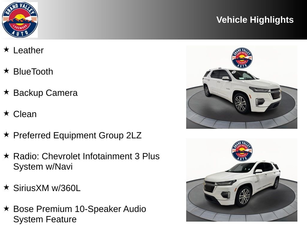 Summit White 2023 Chevrolet Traverse High Country 4D Sport Utility AWD 3.6L V6 SIDI VVT Automatic