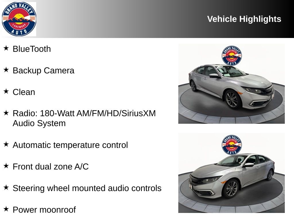 Silver 2019 Honda Civic EX 4D Sedan FWD 1.5L I-4 DI DOHC Turbocharged AUTOMATIC