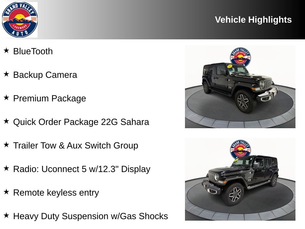 Recent Arrival! BlueTooth, Backup Camera, Premium Package, 12.3" Touchscreen Display, 4-Wheel Disc Brakes, Apple CarPlay/Android Auto, Auxiliary Switches, Class II Receiver Hitch, Heavy Duty Suspension w/Gas Shocks, ParkView Rear Back-Up Camera, Quick Order Package 22G Sahara, Radio: Uconnect 5 w/12.3" Display, Remote keyless entry, Security system, Stop-Start Dual Battery System, Traction control, Trailer Tow & Aux Switch Group. CARFAX One-Owner. Clean CARFAX. Priced below KBB Fair Purchase Price!